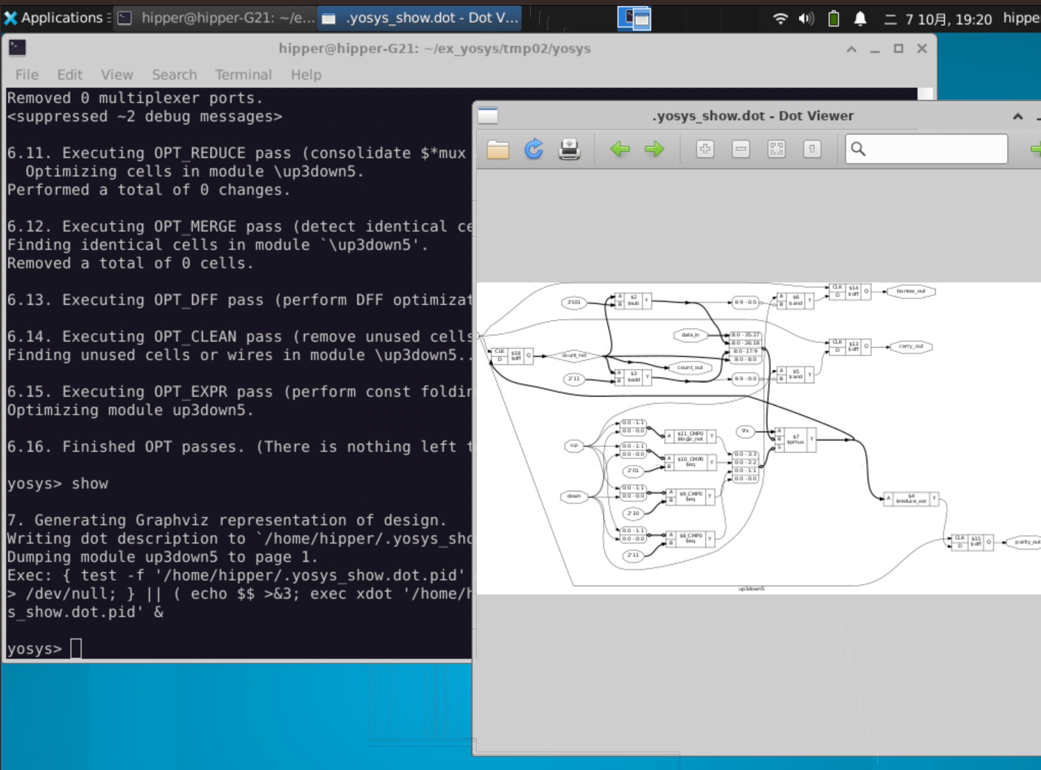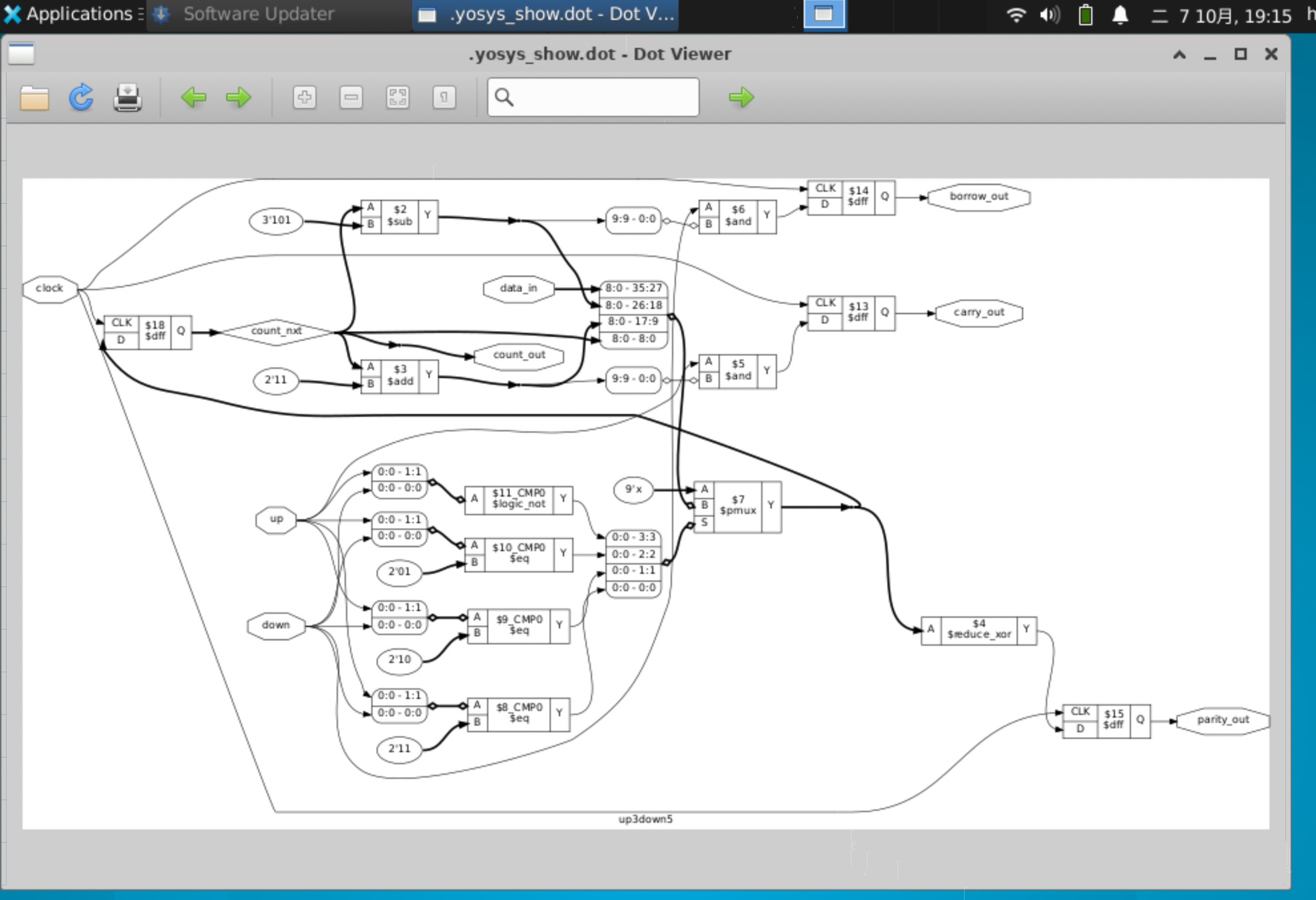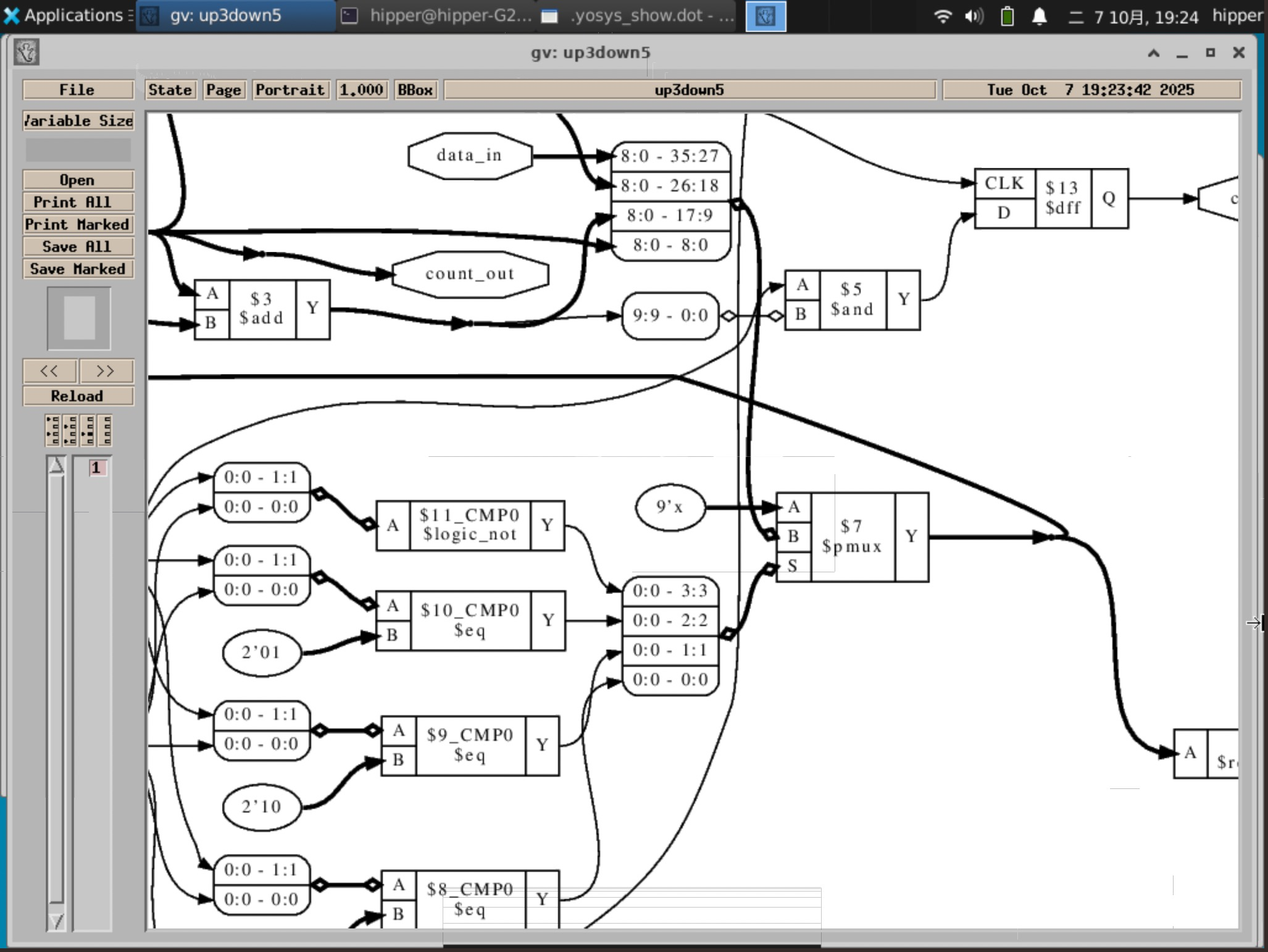 运行到 yosys> show -format ps -viewer gv 显示如下,屏幕有点小: