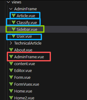 在AdminFrame.vue中放置Sidebar.vue组件,和<router-view />标签。