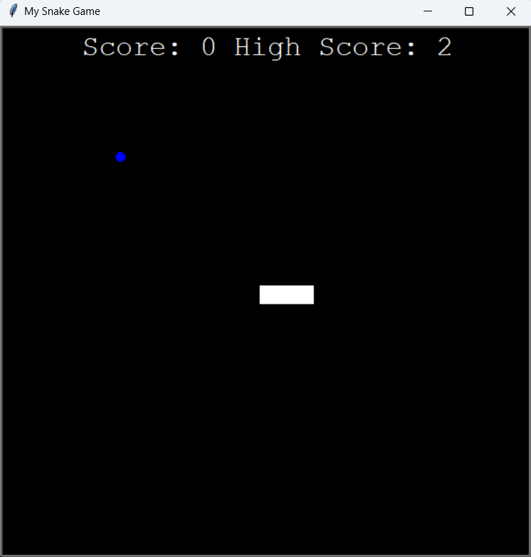 class Scoreboard(Turtle): def __init__(self): super().__init__() self.score = 0 try:with open("data.txt") as file:self.high_score = int(file.read())except FileNotFoundError:self.high_score = 0 self.color("white") self.hideturtle() self.penup() self.goto(0, 260) self.update_scoreboard()def update_scoreboard(self): self.clear() self.write(f"Score: {self.score} High Score: {self.high_score}", align=ALIGNMENT, font=FONT) def increase_score(self): self.score += 1 self.update_scoreboard()def reset(self): if self.score > self.high_score: self.high_score = self.score with open("data.txt", "w") as file: file.write(f"{self.high_score}") self.score = 0 self.update_scoreboard()