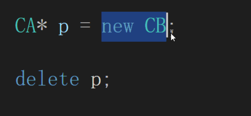 而 delete的时候 是用父类指针 来操作的 所以只会调用 父类析构。