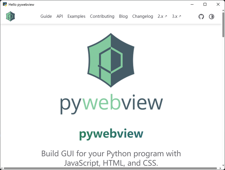 import webviewdef main():window = webview.create_window('Hello pywebview', 'https://pywebview.flowrl.com')webview.start()if __name__ == '__main__':main()