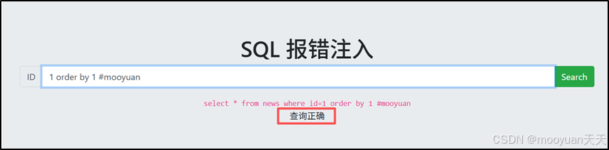 关注下图红框中的SQL注入语句,如下所示参数1被传入后未任何符号包裹,属于数值型。同时注意到页面没有输出任何数据库信息,仅提示“查询成功”,由于页面无输出,故而无法使用联合注入法进行渗透。