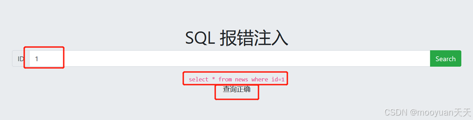根据提示在页面输入1,此时URL的参数变为/?id=1,猜测id就是注入点。