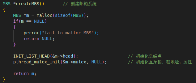 MBS:mail box system 定义获得指针mbs指向整个系统
