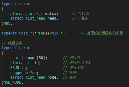 定义MBS类型和构建线程参数结构体