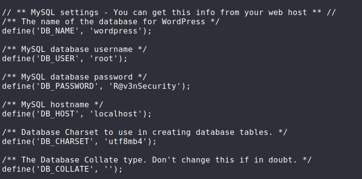可以看到数据库名和密码root,R@v3nSecurity