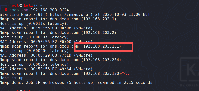 nmap -sn 192.168.203.0/24