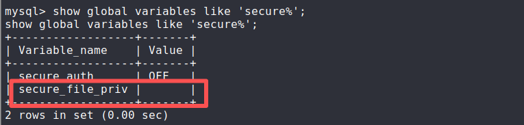 - 再查看secure_file_priv 的值符不符合条件