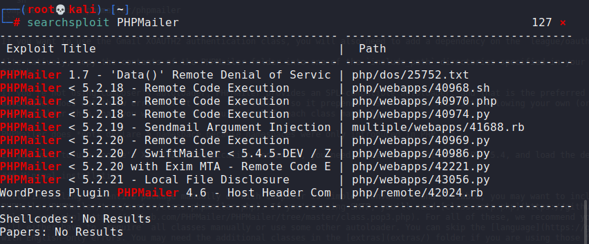 searchsploit PHPMailer