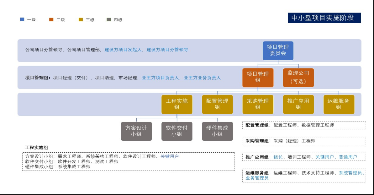 为明确普通公司(以下简称 “公司”)中小型项目(合同金额≤500 万元,或涉及单一业务线 / 少量合作方)的组织分工,厘清各角色职责,保障项目从售前对接至售后交付的全流程高效落地,特制定本说明。