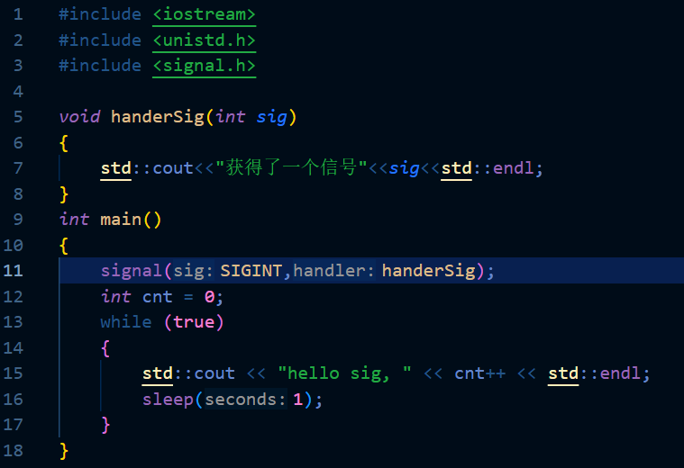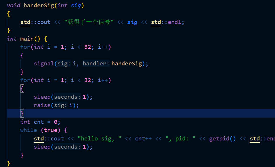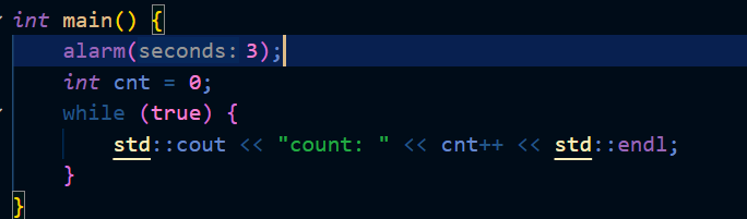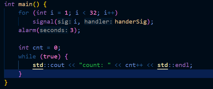 int main() {funcs.push_back(func1);funcs.push_back(func2);funcs.push_back(func3);signal(SIGALRM,handlerSig);alarm(2);while (true) {pause();//暂停}