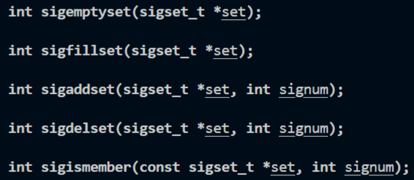 - 功能:将信号集中的所有信号对应的标志位都设置为 1,也就是使该信号集包含系统支持的所有信号。