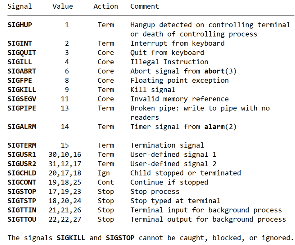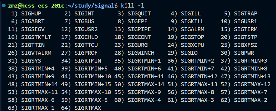 其中1~31是普通信号,34~64是实时信号,无需我们考虑