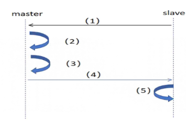 请根据下图3-1-1填写字母编号处的主从同步过程。