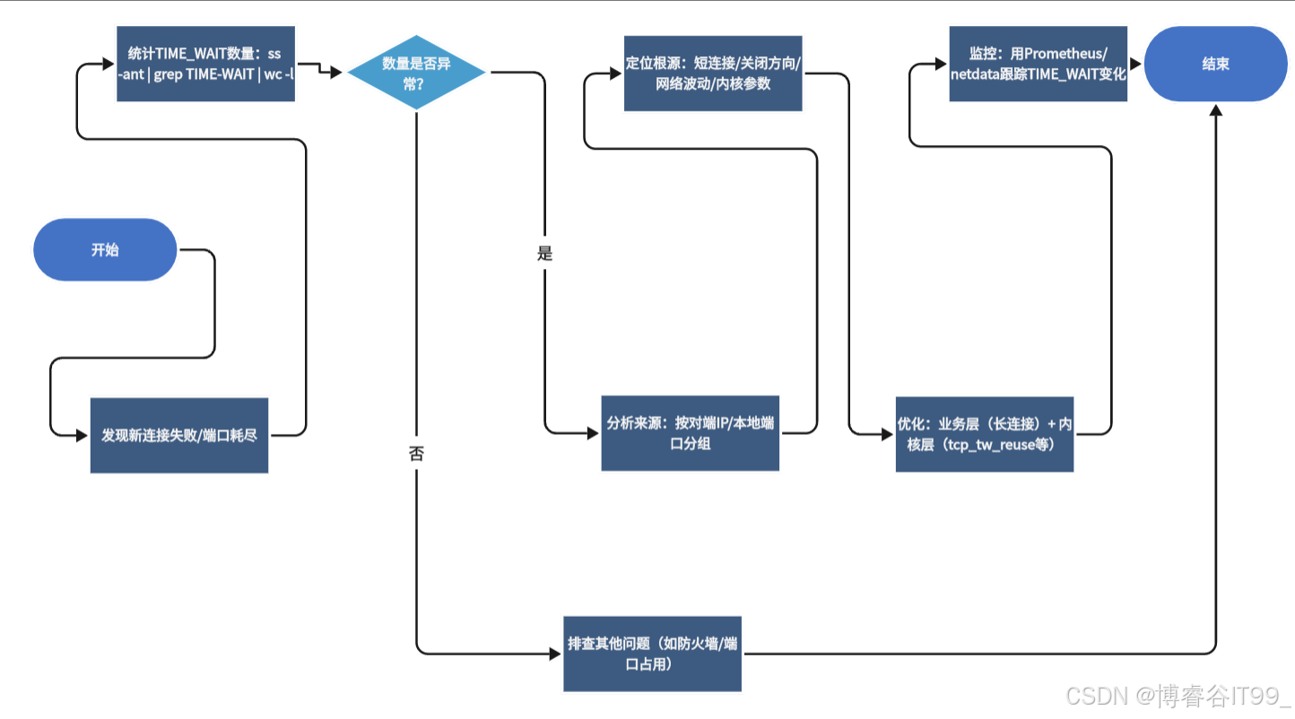 本身不是 “敌人”,而是 TCP 的 “安全卫士”。排查异常的核心是找到 “异常激增的根源”,通过业务设计优化减少TIME_WAIT