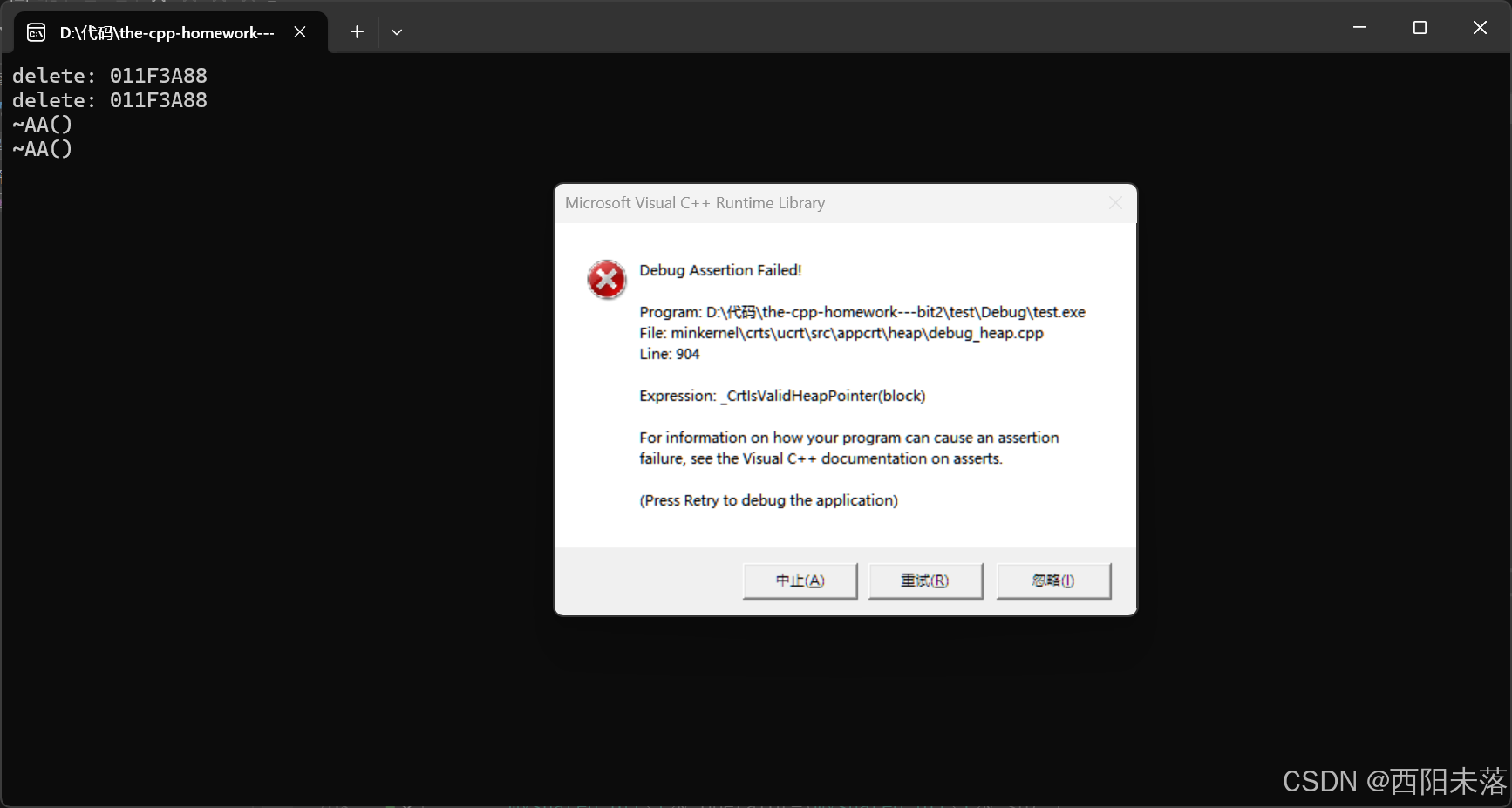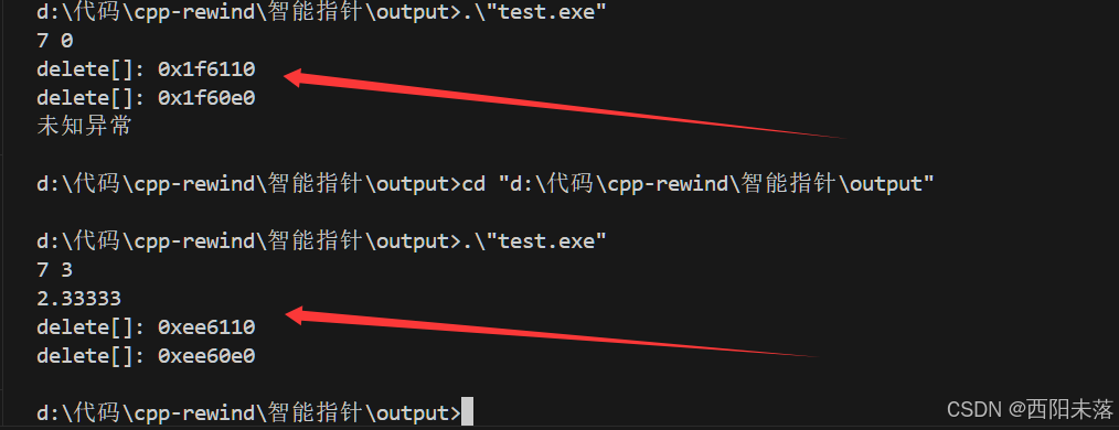 这里其实并没有完全解决我们的问题,或者说我们的这个代码有Bug,就是如果我们的在给两个数组申请资源的时候抛异常了呢,这个时候我们就需要套一层捕获释放的逻辑,非常的麻烦,所以这里更好的方式就是使用智能指针。