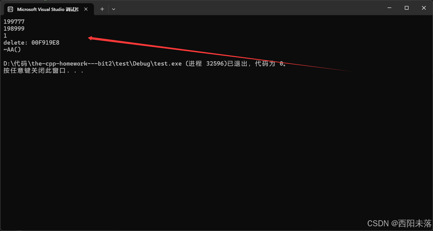 using namespace std;struct AA {int _a1 = 0;int _a2 = 0;~AA() {cout << "~AA()" << endl;}
