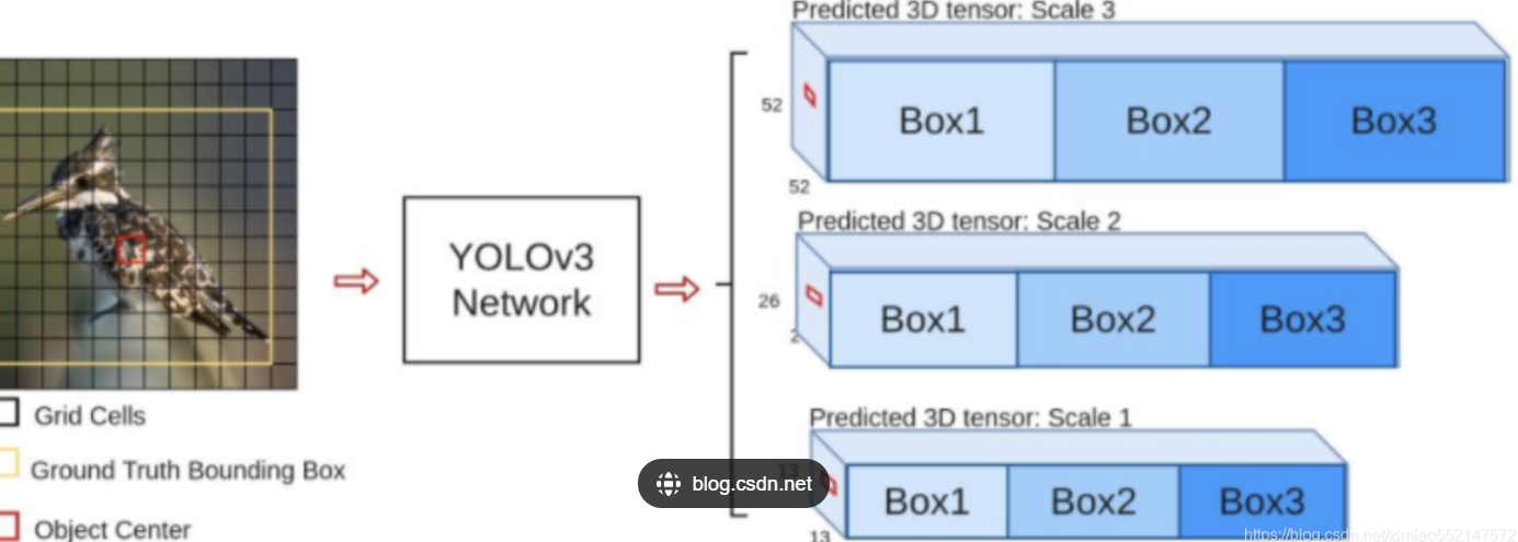 首先,这三个输出,每个输出都会分为三份,分成box 1,box 2,box 3
