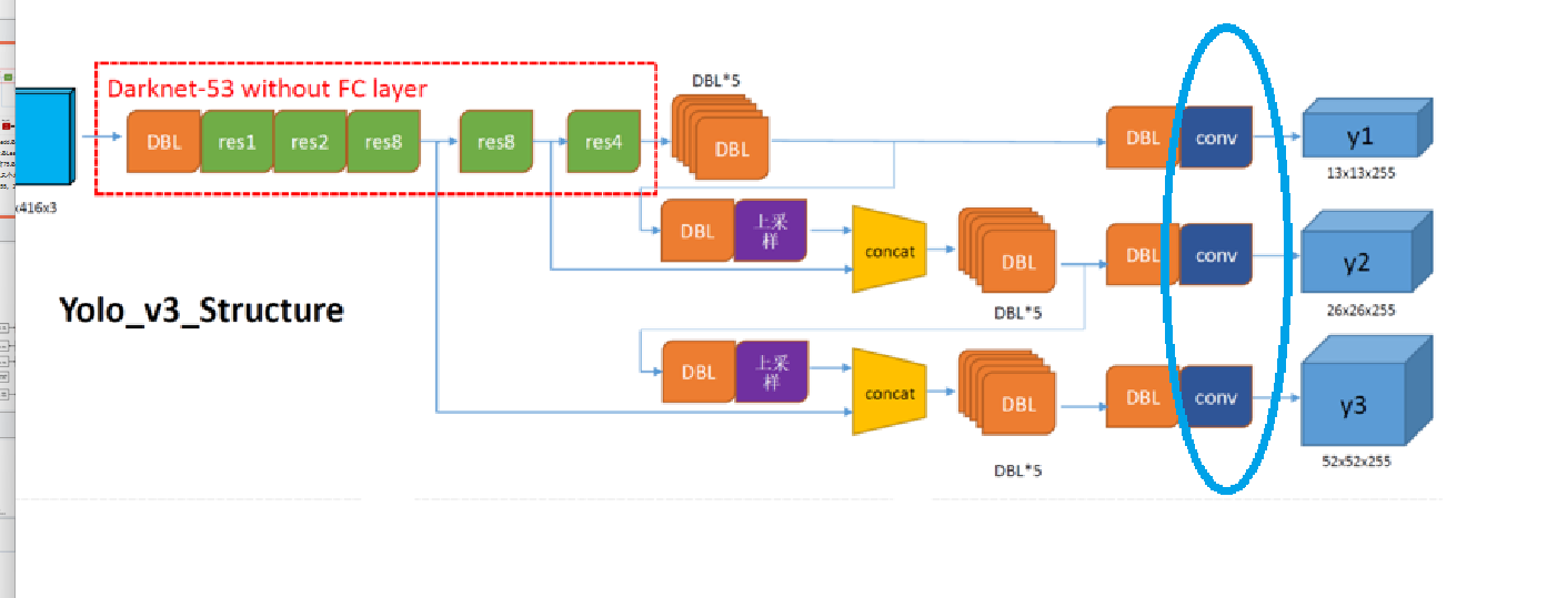 我们这里在之前算的72个DBL的基础上加了3个全连接卷积: