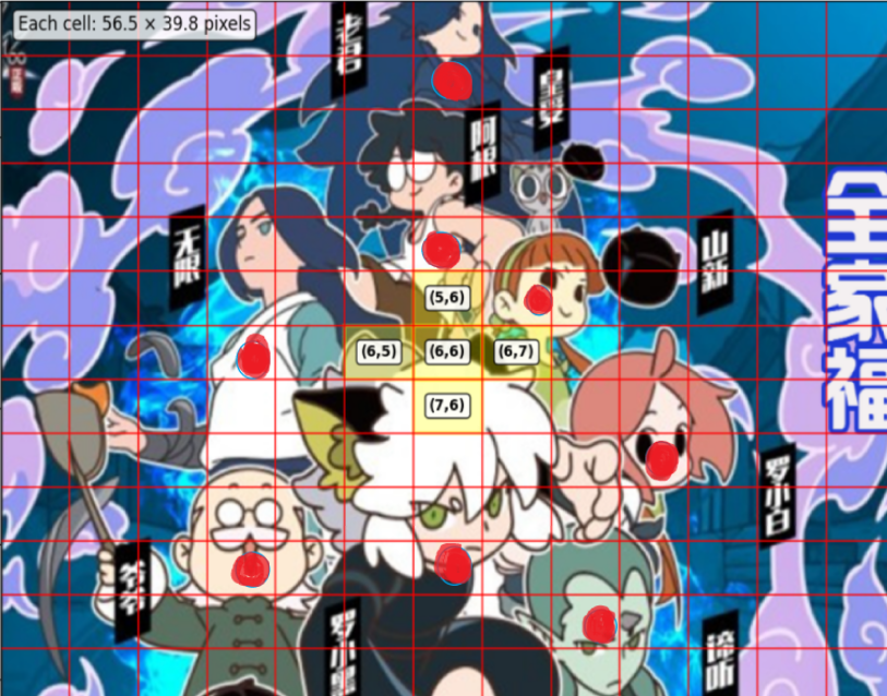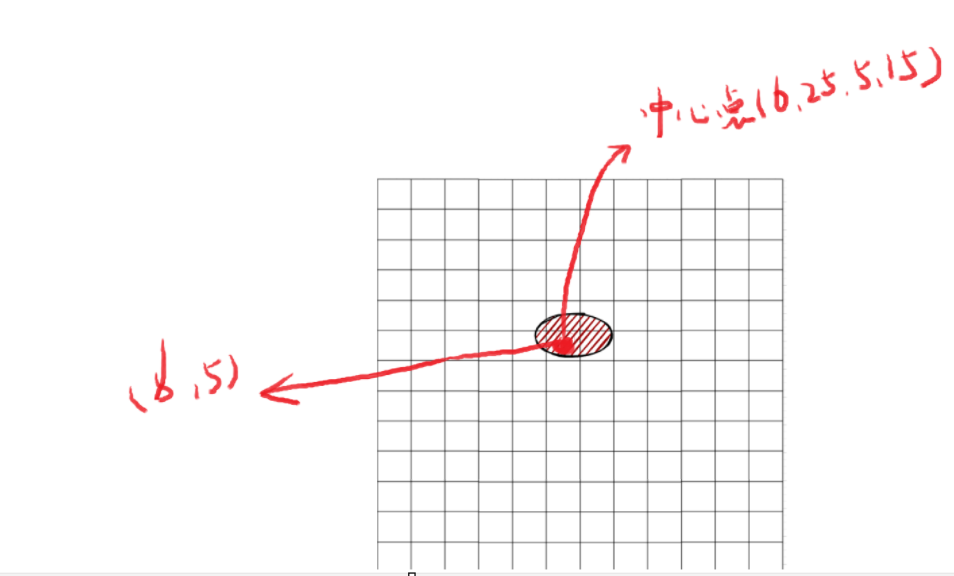 如下图所示,当输出结果图中仅含一个物体时,其中心点落在某个网格内。此时,我们反向传播的数值就是该网格内的中心点坐标值。