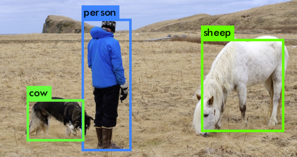 即:我们需要知道,我这张图片中的事物,是什么,判断出他的类别后我们还需要框出这个事物的具体位置在哪里: