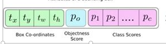 COCO数据集里面有80 个类,所以我们就有P1,P2,......P80的类别打分情况,在加上tx,ty.tw.th 这 4个预测信息来预测框的位置,再加上一个置信度P0