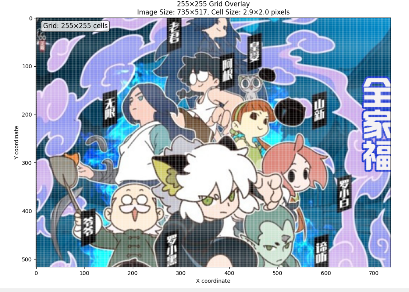 如图我开始传入了一个255*255*3的图片进行训练(如果你们眼力好的话,我上图给你们画好了255*255的小格子)