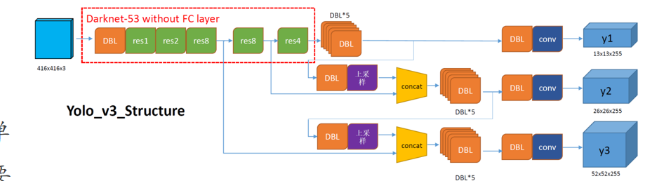 1.主干网络(Darknet-53 without FC layer)的DBL层数: