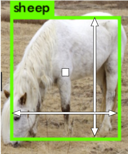 即:用一个中心点(x_center, y_center, w, h)来表示图像中物体的中心,用w, h来表示以(x_center, y_center, w, h)为中心点的矩形的高度和宽度: