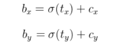 在之前给出的公式中,tx和ty表示中心点在网格(cx,cy)内的偏移量。公式中的σ(sigmoid函数)用于将tx和ty的数值范围压缩到0到1之间,以优化反向传播过程。下图中的cx cy是6和5,那它的偏移量应该是0.25和0.15