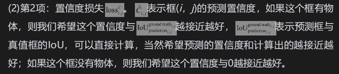 注意,由于YOLO没有锚框,每个单元格的两个框都是直接预测的,所以,上述IoU是预测框与真值框的IoU。
