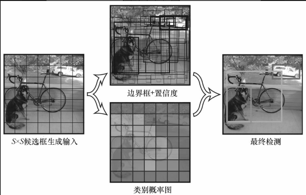 YOLO将输入图像划分为S×S个网格,每个网格单元仅预测一个对象。