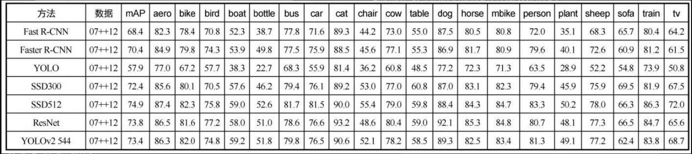 再看YOLOv2的精度,很明显YOLOv2的总体mAP也在平均水平上,是各类检测器中能够很好地平衡速度和精度的一种检测器,在同等准确率下速度是很棒的。
