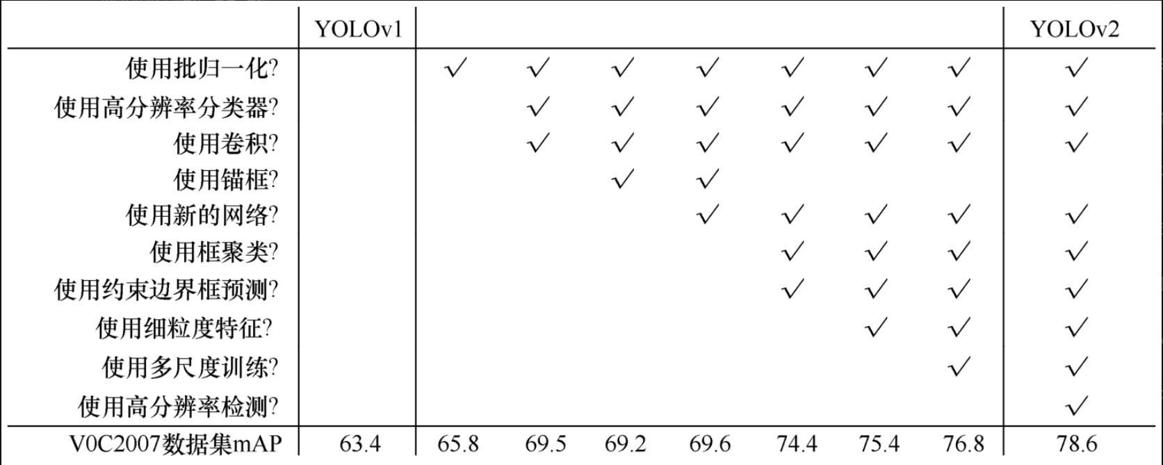 - 结论: YOLOv2在保持高精度(优于SSD,接近Faster R-CNN)的同时,实现了极快的检测速度(远超Faster R-CNN),是其最大的成功之处。