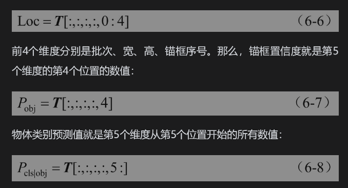 在实际操作中,先将输出的张量重塑成形状(batch_size,13,13,5,25),如果以T表示一个张量,每个批次的边框中心点坐标和宽高为(tx,ty,tw,th),用Loc表示: