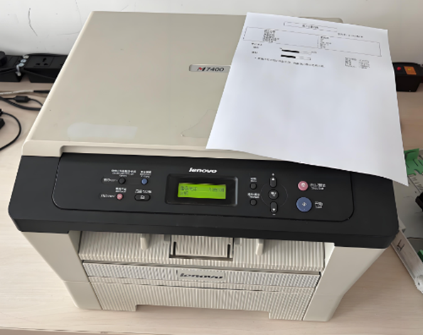 一台联想M7400黑白激光打印机,用户送修称购机到现在没怎么用一直放在库房,现在放的不能用了,需要维修一下;