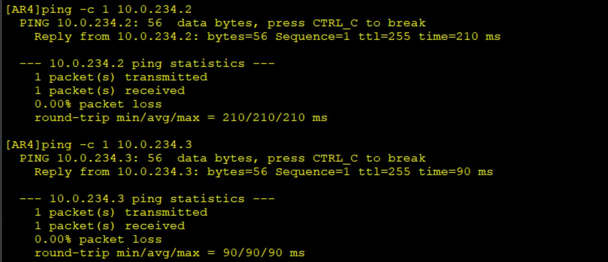 [AR4-GigabitEthernet0/0/0]ip address 10.0.234.4 24