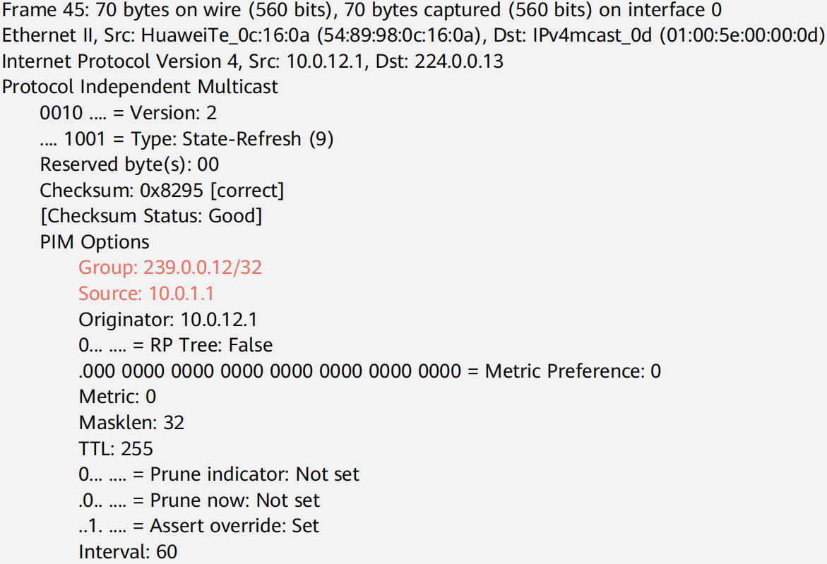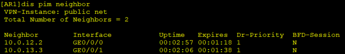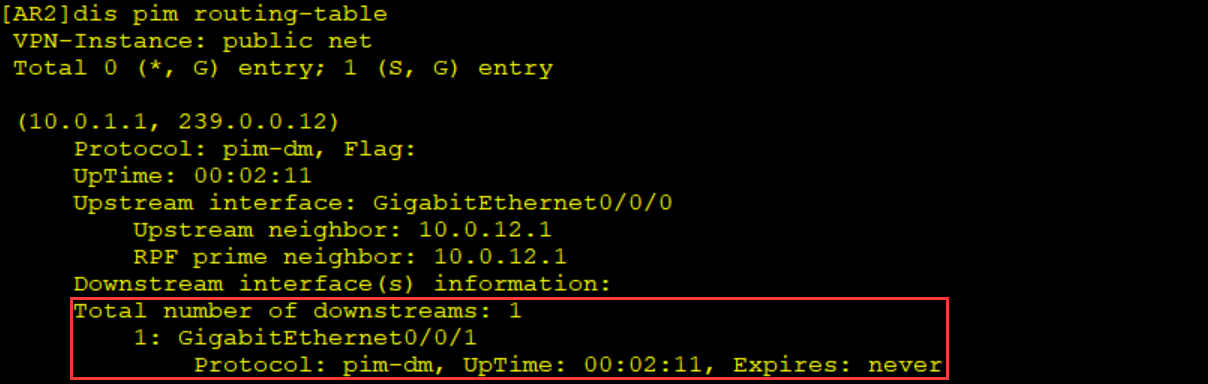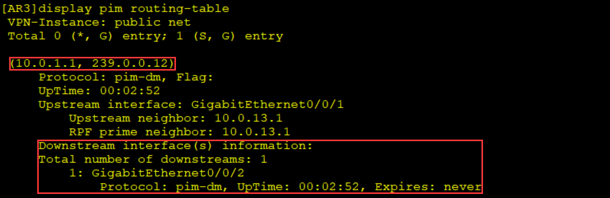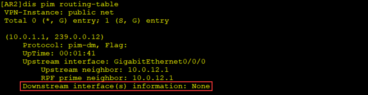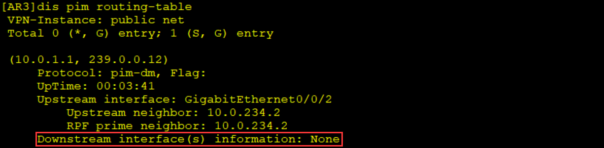 Oct 7 2025 11:54:02.739.1-08:00 AR1 PIM/7/JP:(public net): PIM ver 2 JP receiving 10.0.12.2 -> 224.0.0.13 on GigabitEthernet0/0/0 (P013091)