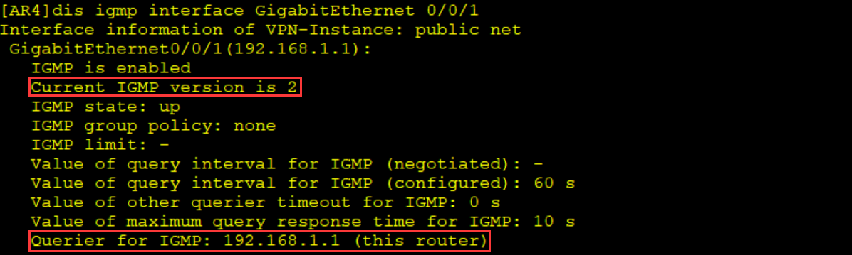 # 在R4的GE0/0/1接口上开启IGMP,并配置静态组播组模拟组播接收者