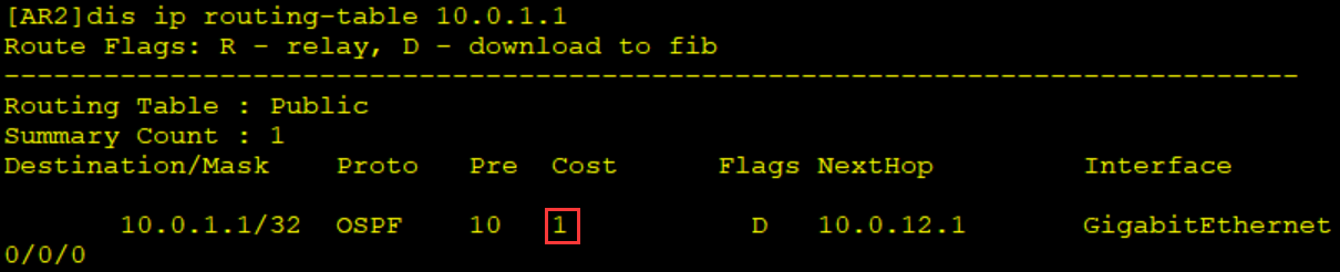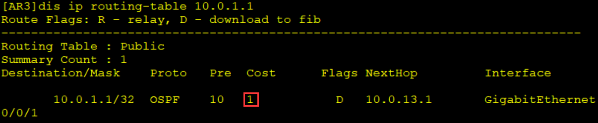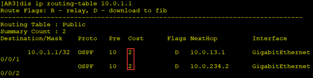 [AR3-GigabitEthernet0/0/1]ospf cost 2