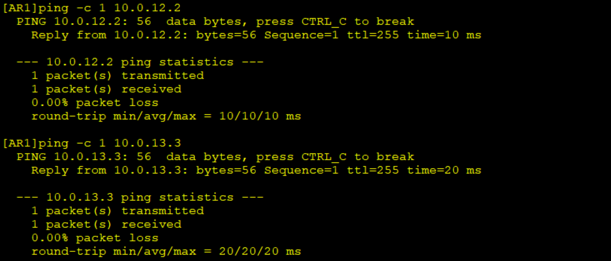 [AR1-GigabitEthernet0/0/1]ip address 10.0.13.1 24