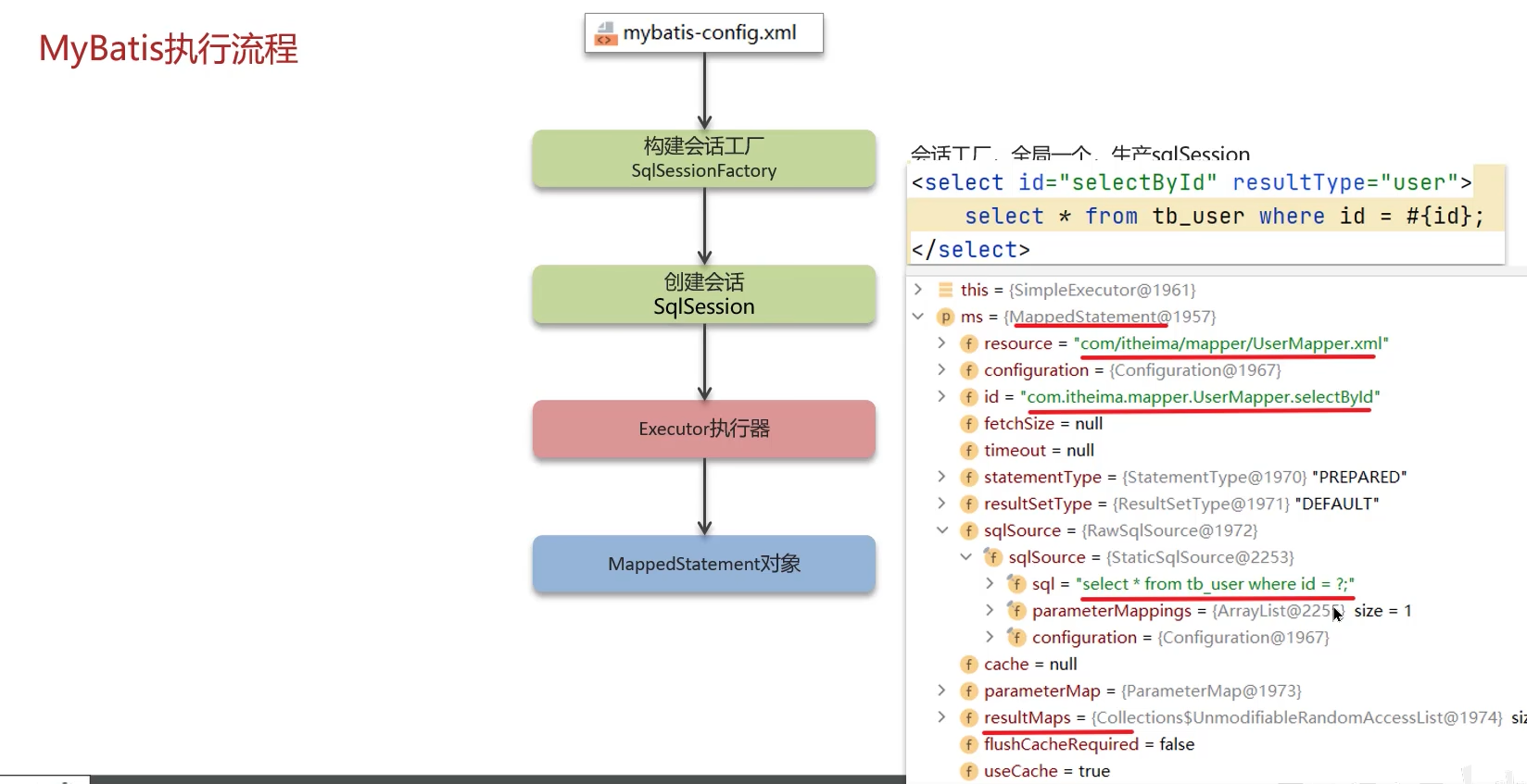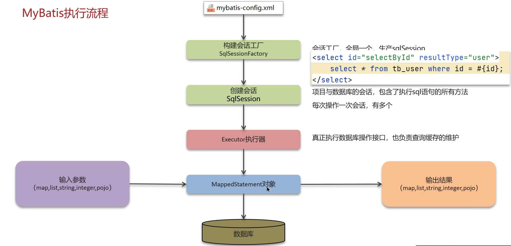 MyBatis的执行流程可以看作是“如何通过接口方法最终执行SQL并返回结果”的故事。其核心过程如下图所示,我们将逐步分解: