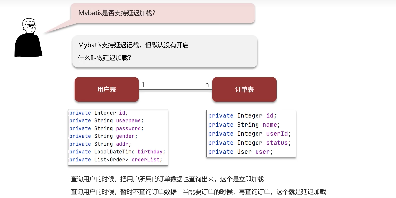 (用户)信息可能并不需要立即显示。使用延迟加载,只有在调用 order.getUser()