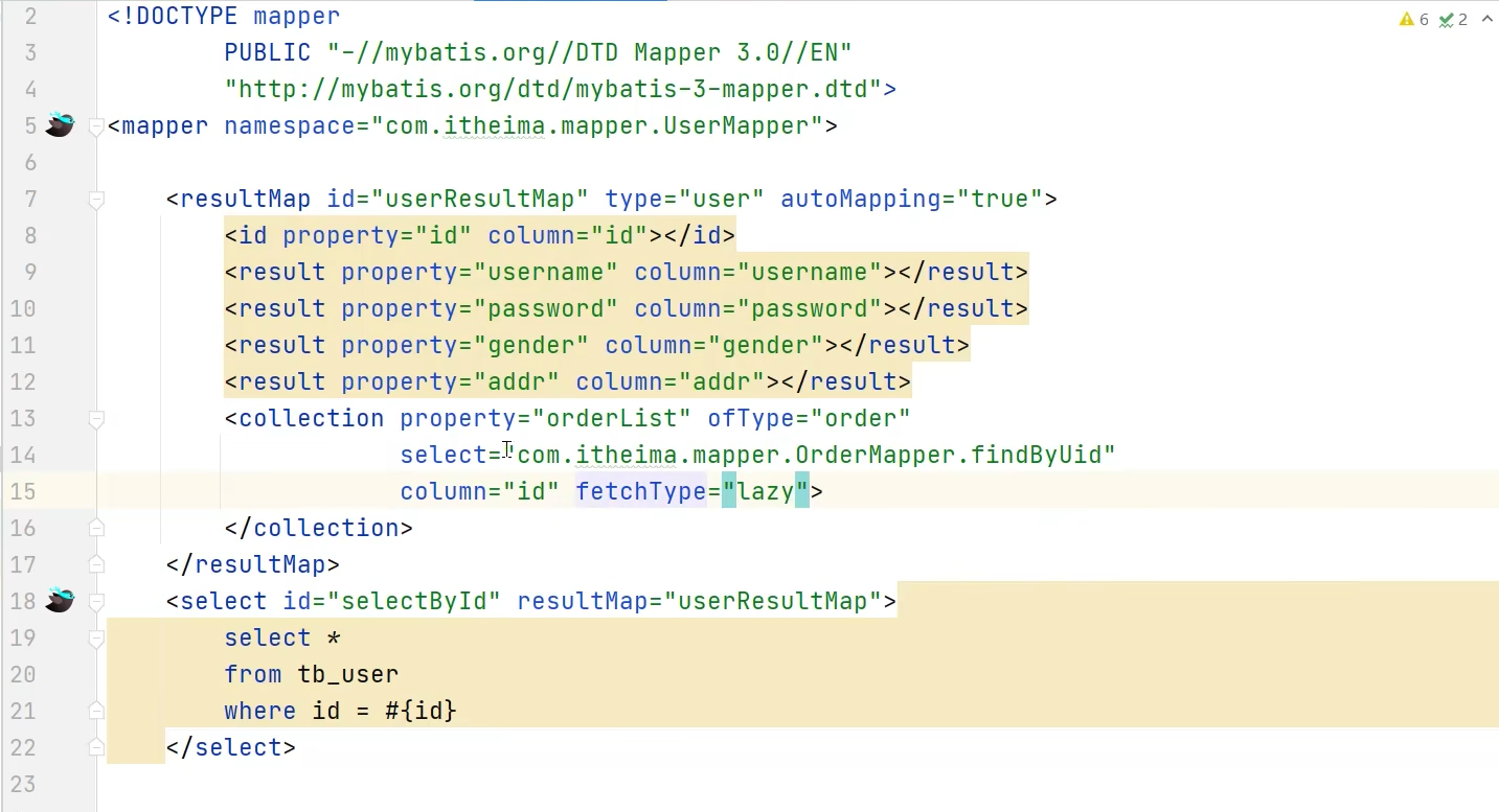 )被查询出来后,MyBatis并不会直接填充其关联属性(如user