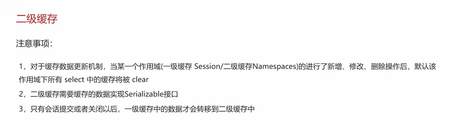 - 查询顺序:二级缓存 -> 一级缓存 -> 数据库。