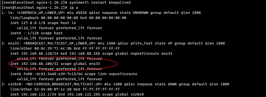 在两台服务器上重启 Keepalived 使配置生效: