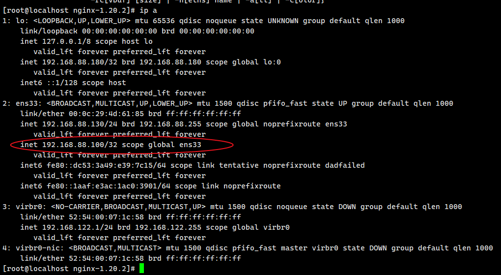 查看虚拟 IP 绑定情况: